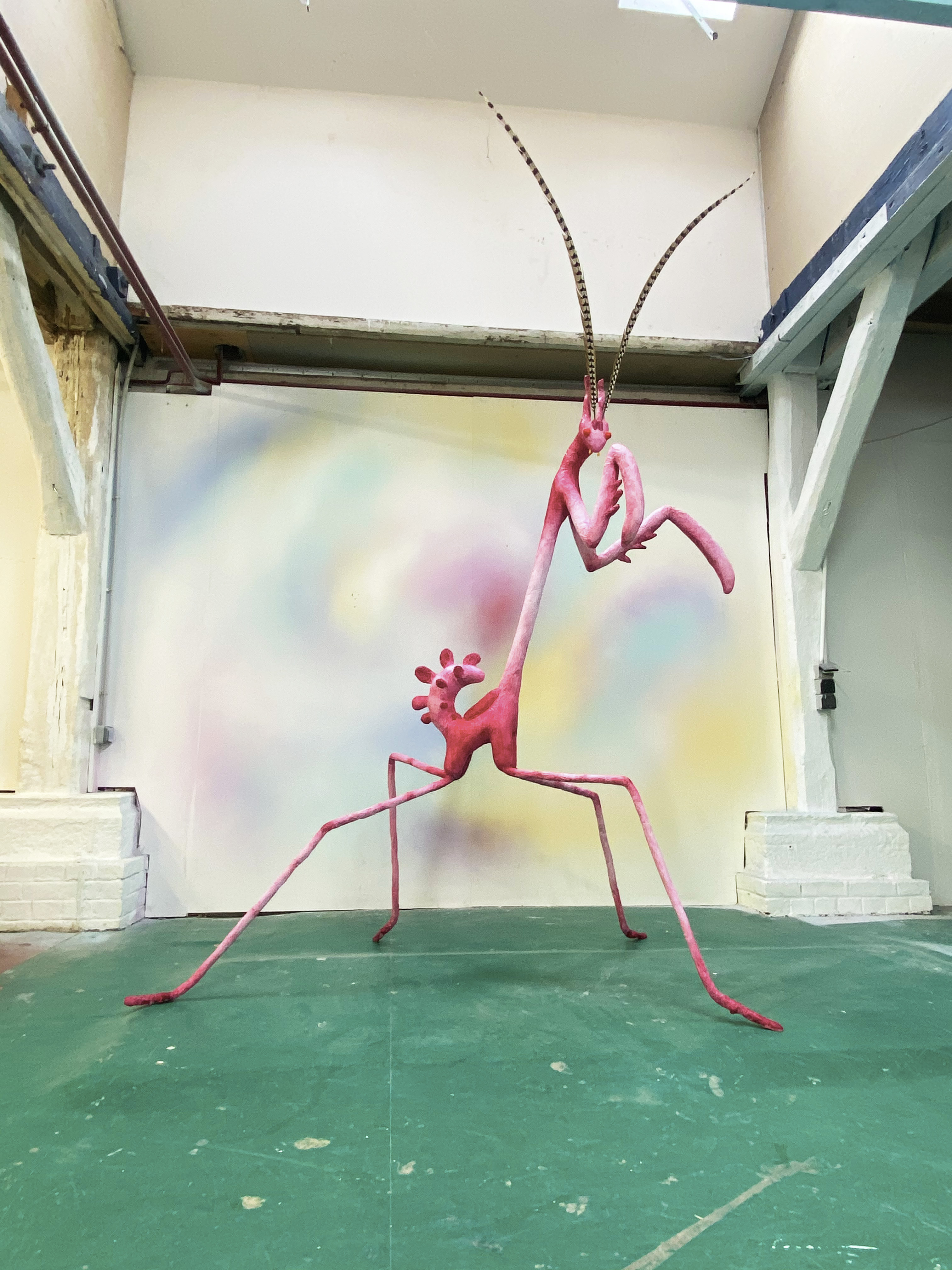 grillage, mousse polyuréthane, résine acrylique et plumes de faisant vénéré